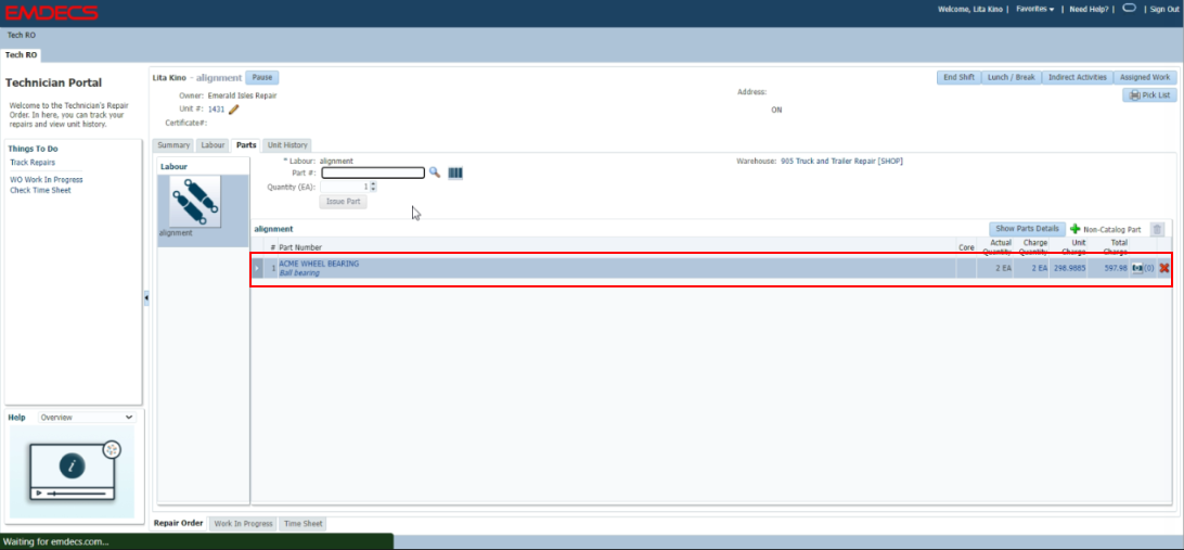 If an RO is in an open status for the same Unit, they may combine in the Tech RO (as pictured below). An easy way to tell is that you will already be able to select the Summary or Parts tabs. In circumstances such as this, an Admin can split the RO once an RO# has been assigned. Please contact EMDECS Support if you require assistance with this